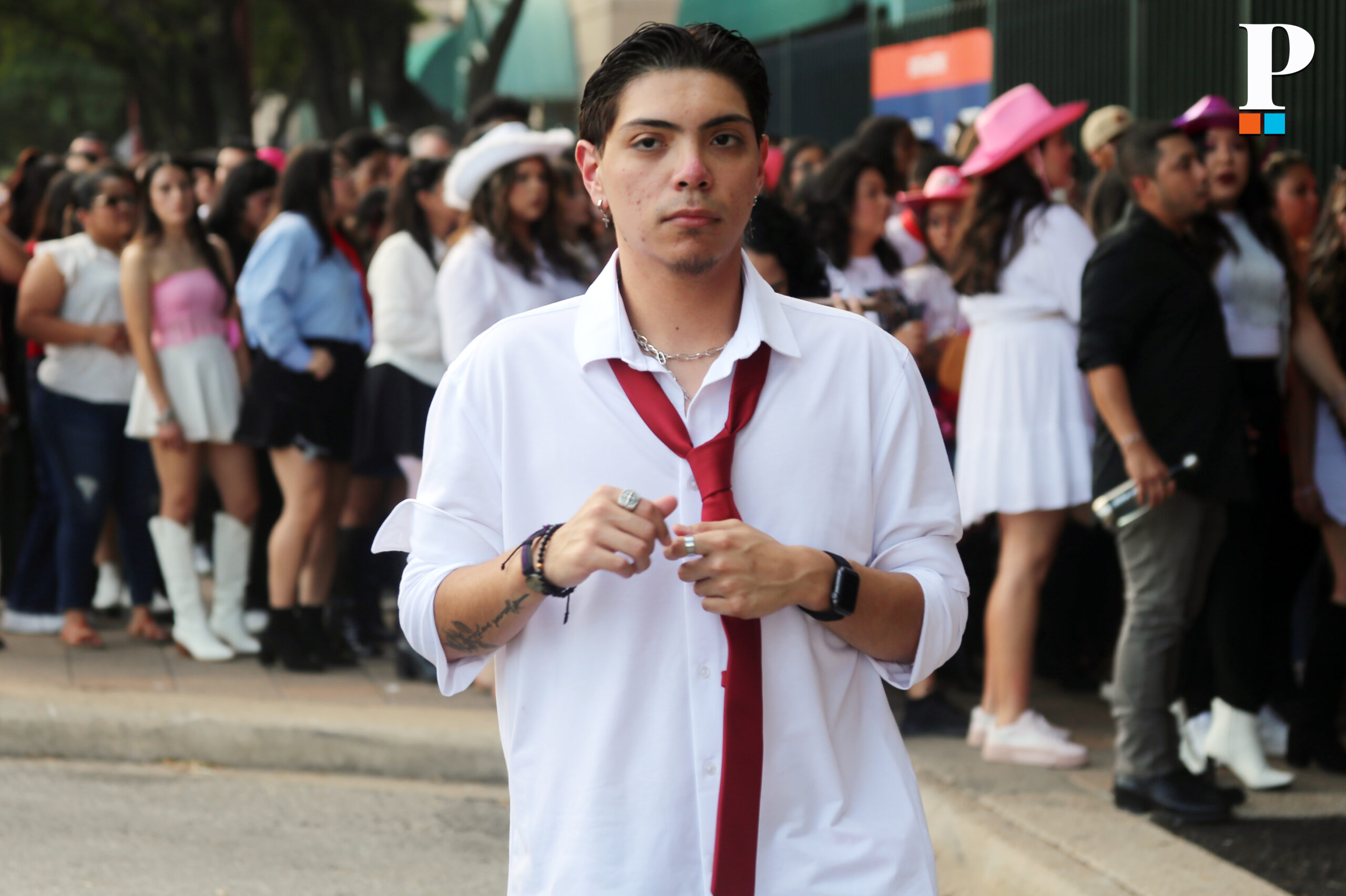 Como era previsto, el clásico saco rojo acompañado de la icónica corbata del mismo color fue el atuendo que eligieron cientos de personas para estar a tono con este esperado concierto, quizás uno de los más relevantes de este 2023.