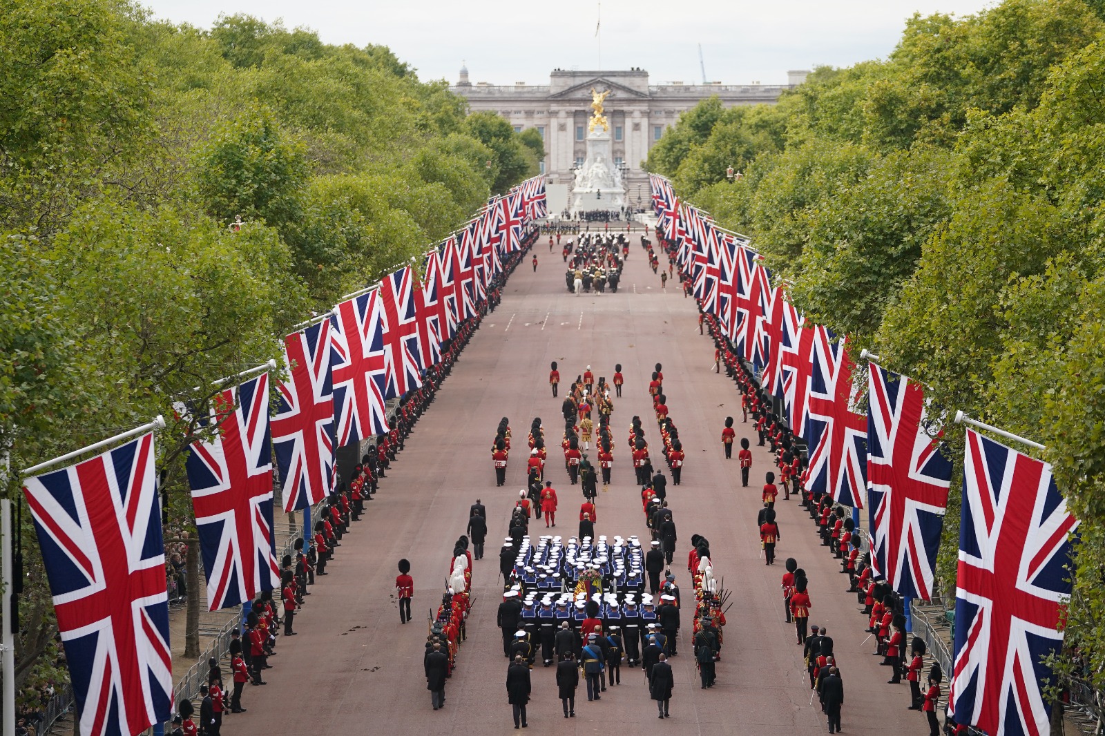 Los cuatro hijos de Isabel II, el ahora Rey Carlos III, la Princesa Ana, el Príncipe Andrés y el Príncipe Eduardo, caminaron detrás de su féretro que era transportado en un carruaje de cañón.