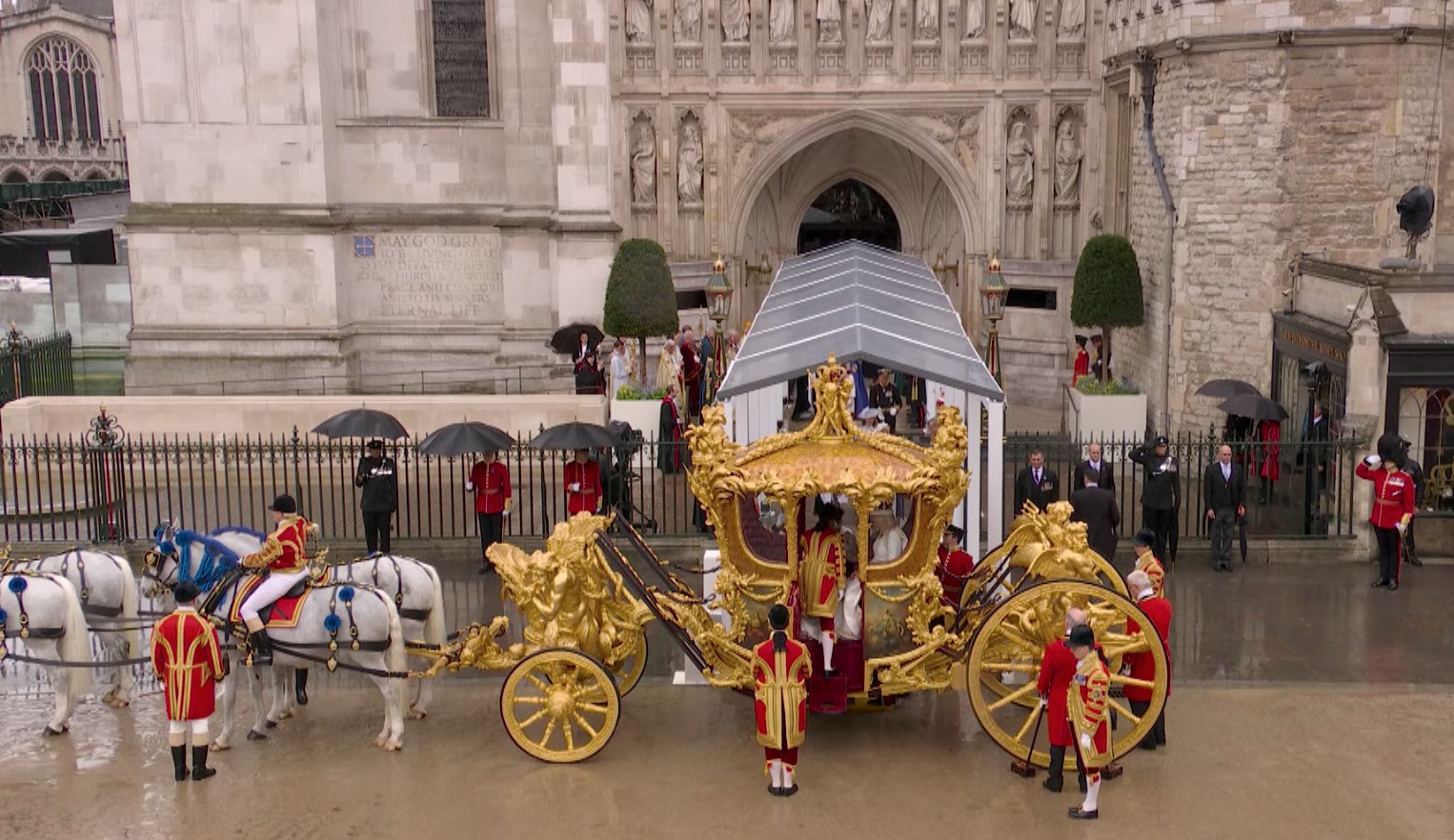 Esta mañana sus Majestades, Carlos III y Camila viajaron desde el Palacio de Buckingham en a procesión ‘The King’s Procession’ hasta la Abadía de Westminster en el en carruaje, Diamond Jubilee State Coach.