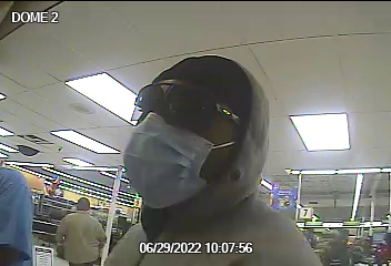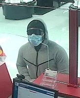 Los testigos describieron a «Big Shades Bandit» como un hombre negro de unos 20 años, de aproximadamente 5’7 «de altura, con una estatura mediana. Llevaba grandes lentes de sol negros, un cubrebocas quirúrgico azul, una sudadera con capucha gris con cremallera y la capucha levantada sobre un trapo negro, pantalones Nike negros con rayas rojas/azules a los lados y zapatillas y guantes blancos.